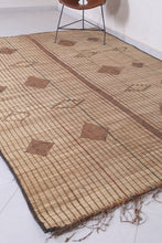 Elevate your home decor with this 6.3x9.3 ft Tuareg rug, a stunning piece of North African craftsmanship. Handwoven with natural materials like reed and leather, this rug features geometric diamond patterns that reflect the rich heritage of the Tuareg nomads. Its earthy tones and intricate design make it perfect for a bohemian, modern, or minimalist aesthetic. Durable and lightweight, it’s suitable for indoor or outdoor use, whether in living rooms, patios, or bedrooms. Add cultural authenticity and timeless beauty to your space today.