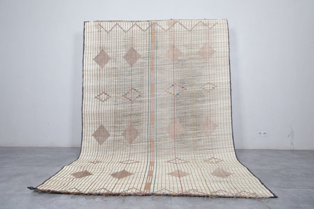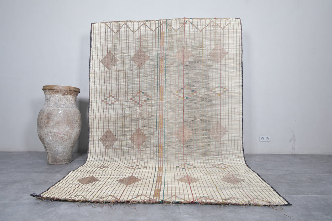 Enhance your space with this 6.3x9.9 ft Tuareg rug, a masterpiece of traditional tribal craftsmanship. Handwoven using durable natural materials like reed and leather, this rug features soft earthy tones with striking diamond and geometric patterns, reflecting the artistry of North African nomadic culture. Ideal for both modern and rustic interiors, it adds an authentic touch to any room, whether a living area, dining room, or workspace. Lightweight and versatile, this eco-friendly piece is perfect for lovers of unique, artisanal decor.