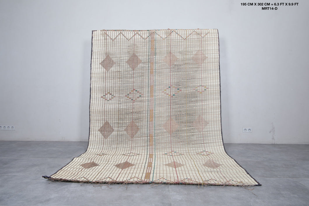 - 192x300 cm rug - 6.3x9.9 rug - 6’3”x9’9” rug - African rug - Authentic Tuareg rug - bedroom rug - beige rug - black accent rug - boho chic rug - brown rug - Camel leather rug - camel leather trim - collector’s rug - desert-inspired rug - Dining room rug - durable rug - eco-friendly rug - Entryway rug - expressive pattern rug - flat laid rug - flatweave rug - Floor mat - geometric pattern rug - Geometric Tuareg rug - Hallway r - hallway rug - heirloom rug - indoor outdoor rug - Interior decor - living room rug - low-pile rug - Mauritanian mat - Mauritanian rug - minimalist rug - modern rustic rug - museum quality rug - natural fiber rug - Natural reed rug - neutral décor rug - Nomadic decor - Nomadic rug - Palm fiber rug - portable rug - premium rug - quality craftsmanship rug - Reed mat - Reed rug - Rug wall art - Sahara decor - Saharan rug - statement floor covering - statement rug - sustainable rug - traditional weave rug - travel-friendly rug - Tribal design rug - tribal rug - Tuareg reed rug - Tuareg rug - Unique rug - Vintage reed rug