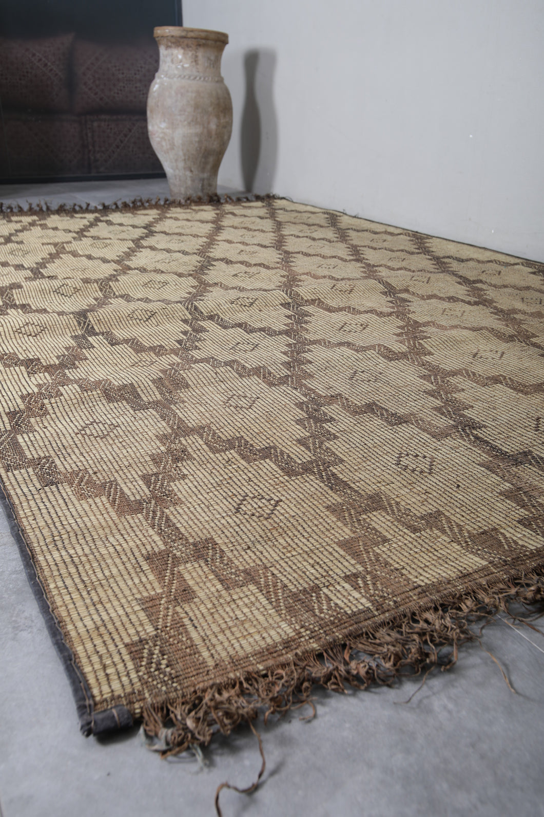 - 204x308 cm rug - 6.7x10.1 rug - 6’7”x10’1” rug - 7x11.9 rug - Adjustable rug - African décor - African rug - Artisan-made mat - Authentic handwoven rug - Authentic Tuareg rug - bedroom rug - beige rug - black accent rug - boho chic rug - brown rug - Camel hide accent - Camel leather rug - camel leather trim - collector's rug - Cultural heritage rug - Decorative floor mat - decorative rug - Dining room rug - durable rug - Earth tone rug - Eco-conscious rug - eco-friendly rug - Entryway rug - Ethnic home decor - Fair trade rug - flatweave rug - Floor mat - Geometric design rug - geometric pattern rug - Geometric Tuareg rug - global décor rug - grand design rug - great room rug - Hand-loomed rug - handcrafted rug - Handmade African mat - Handmade Saharan mat - handwoven Tuareg rug - Heavy-duty rug - heirloom rug - indoor outdoor rug - Interior decor - large area rug - Leather mat accent - Leather-bound rug - living room rug - low-pile rug - Luxury rug - Mauritanian mat - Mauritanian rug - minimalist rug - modern rustic rug - museum-quality rug - Natural decor - natural fiber rug - Natural reed rug - neutral décor rug - Nomadic decor - Nomadic rug - Nomadic shepherd rug - Organic rug - Outdoor rug - Palm fiber mat - Palm fiber rug - Palm reed rug - Patio rug - portable rug - premium rug - quality craftsmanship rug - Reed mat - Reed rug - Rug for outdoors - Rug wall art - Rustic home rug - Sahara decor - Sahara masterpiece - Saharan rug - Showpiece rug - statement floor covering - Statement piece rug - statement rug - sustainable rug - Traditional nomad rug - traditional weave rug - travel-friendly rug - Tribal decor - Tribal design rug - tribal rug - Tuareg masterpiece - Tuareg reed rug - Tuareg rug - Tuareg tribes rug - Unique rug - Vintage reed rug - Vintage-style rug - Wall hanging rug