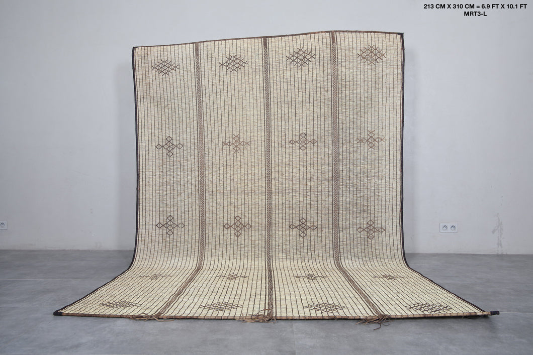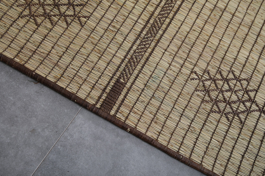 - 210x308 cm rug - 6.9x10.1 rug - 6’9”x10’1” rug - African rug - bedroom rug - beige rug - black accent rug - boho chic rug - brown rug - Camel leather rug - camel leather trim - collector’s rug - decorative accent rug - decorative rug - durable rug - eco-friendly rug - Elegant design rug - flatweave rug - Floor mat - geometric pattern rug - Geometric Tuareg rug - global décor rug - great room rug - handcrafted rug - handwoven Tuareg rug - heirloom rug - indoor outdoor rug - large area rug - living room rug - low-pile rug - Mauritanian mat - Mauritanian rug - minimalist rug - modern rustic rug - museum quality rug - natural fiber rug - Natural reed rug - neutral décor rug - Nomadic rug - Palm fiber rug - portable rug - premium rug - quality craftsmanship rug - Reed mat - Reed rug - Rug wall art - Sahara - Saharan rug - statement floor covering - statement rug - sustainable rug - traditional weave rug - travel-friendly rug - Tribal design rug - tribal rug - Tuareg reed rug - Tuareg rug - Unique rug - Vintage reed rug