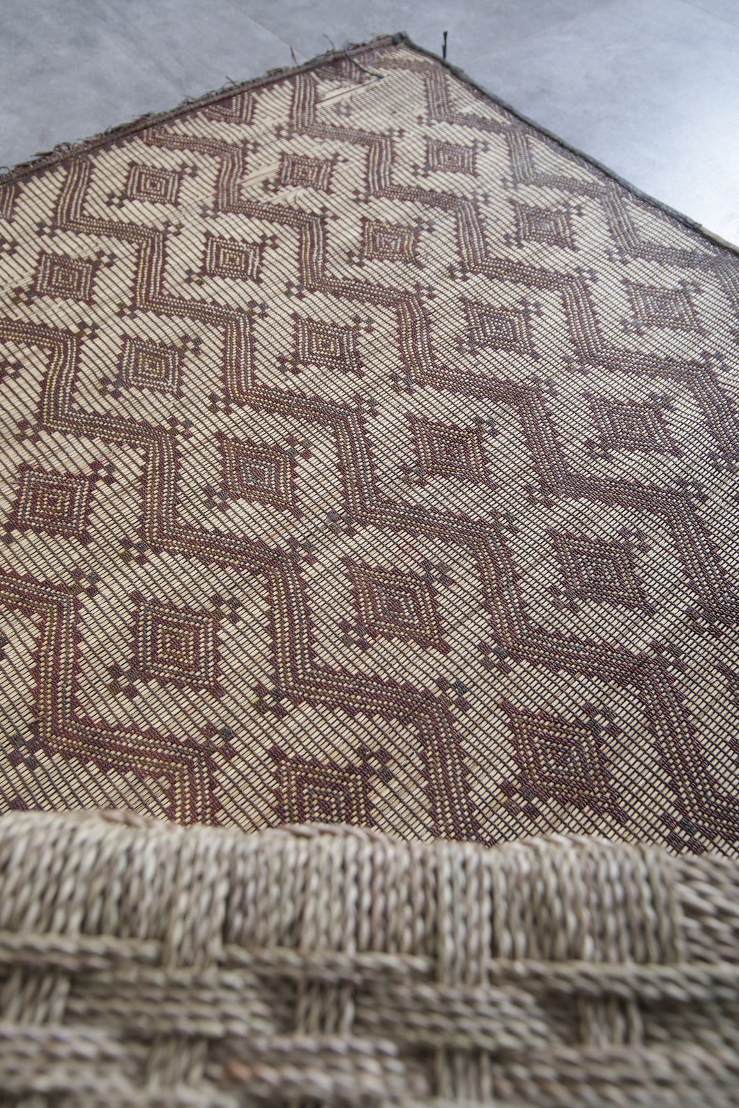 - 112x120 cm rug - 3.7x3.9 rug - 3’7”x3’9” rug - Accent rug - African rug - bedroom rug - beige brown rug - boho chic rug - Camel leather rug - collector’s rug - decorative rug - desert-inspired rug - Diamond design rug - Dining room rug - durable rug - earthy tone rug - eco-friendly rug - Entryway rug - flatweave rug - Floor mat - geometric rug - Geometric Tuareg rug - global décor rug - handcrafted rug - handwoven Tuareg rug - heirloom rug - home accent rug - indoor outdoor rug - Interior decor - leather trimmed rug - living room rug - low-pile rug - Mauritanian mat - Mauritanian rug - minimalist décor rug - modern tribal rug - museum quality rug - Natural dec - natural décor rug - natural fiber rug - Natural reed rug - Nomadic decor - Nomadic rug - Palm fiber rug - portable rug - quality craftsmanship rug - Reed mat - Reed rug - Rug wall art - rustic rug - Sahara decor - Saharan rug - Small area rug - Small Tuareg rug - statement floor mat - statement rug - sustainable rug - travel-friendly rug - tribal rug - Tuareg reed rug - Tuareg rug - Unique rug - Vintage reed rug