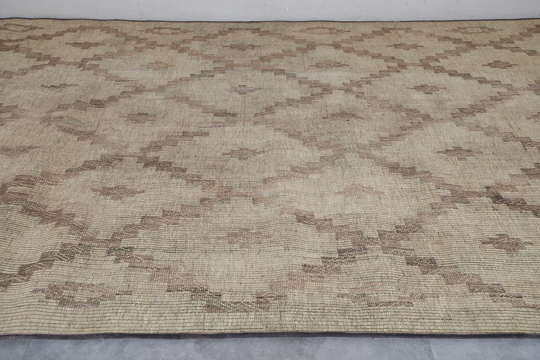 Elevate your interior with this majestic Tuareg rug, handwoven with care and measuring 8 x 15.8 feet. Featuring a striking diamond pattern in neutral tones, this rug is perfect for creating a sophisticated and inviting space. Made from durable natural materials, it seamlessly combines style with functionality, making it an excellent choice for large rustic, bohemian, or modern interiors. Use it as a statement piece or a complementary layer to enhance your decor. Bring home this exceptional work of craftsmanship today.