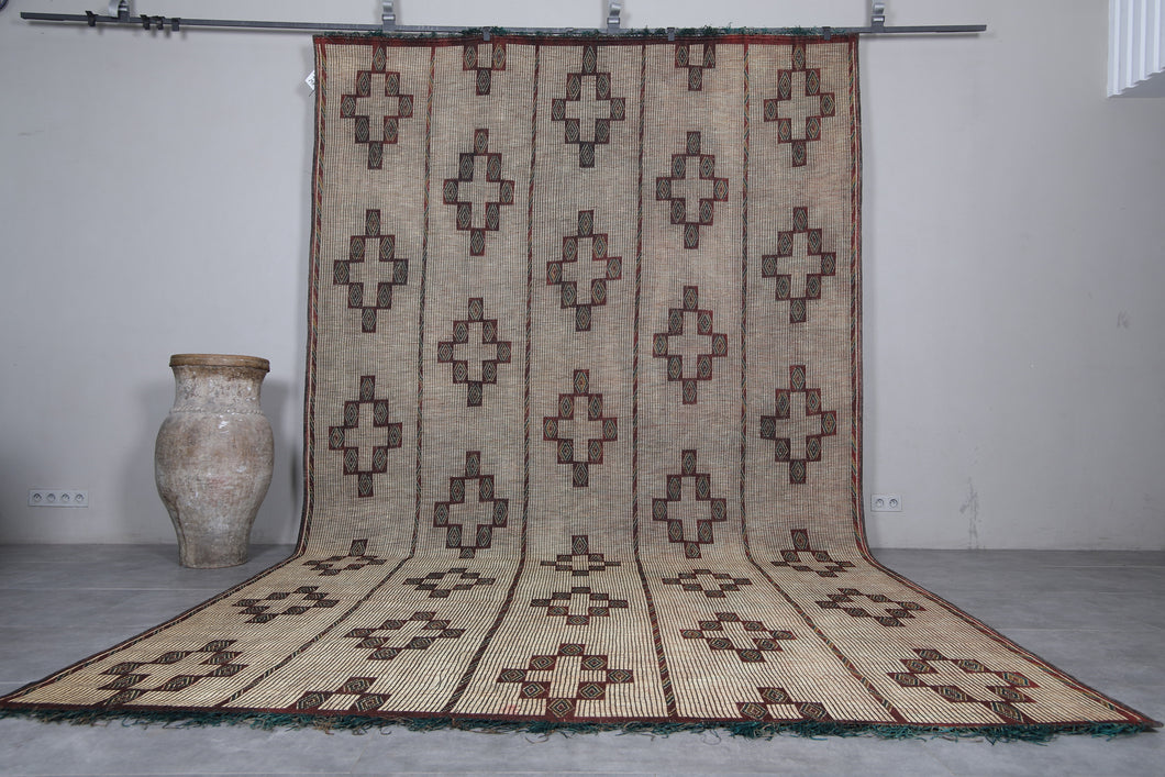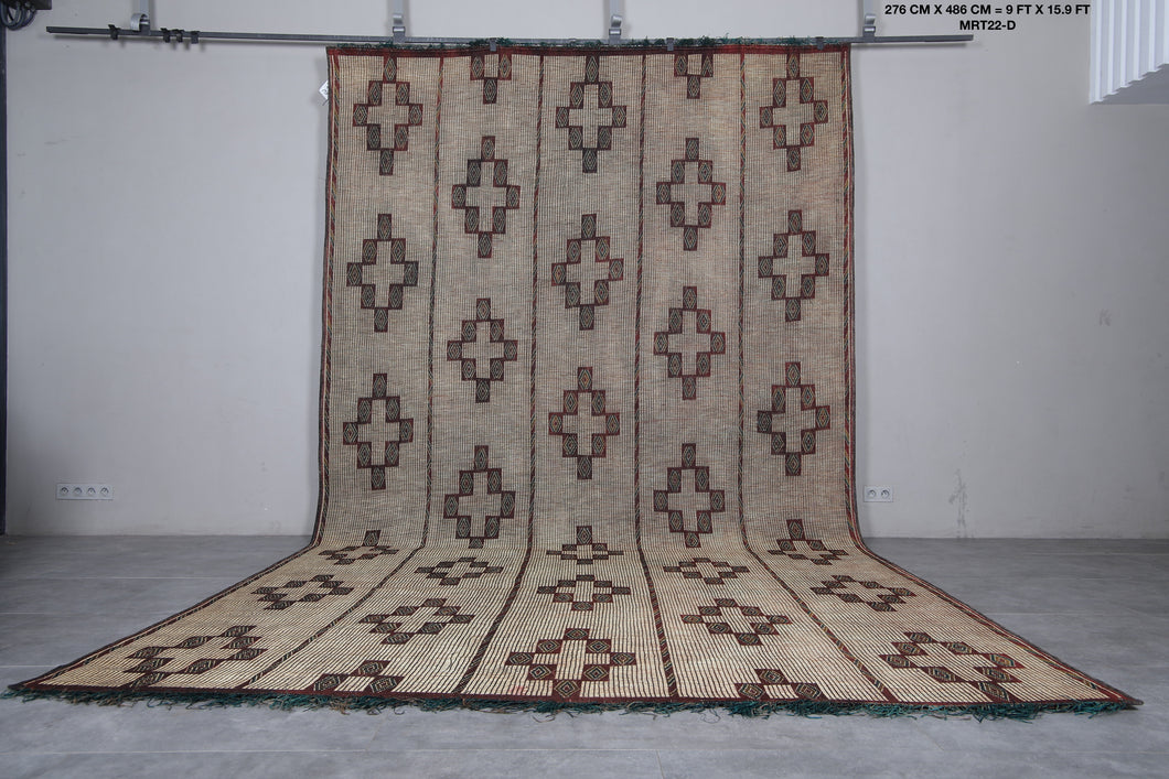 Introduce the timeless charm of a Tuareg rug to your home with this handwoven masterpiece. Measuring a generous 9 x 15.9 feet, this rug features bold tribal motifs that add character and a sense of heritage to any space. Crafted using traditional techniques, its intricate patterns and earthy tones bring warmth and authenticity to your décor. Durable and stylish, this rug is perfect for creating a striking focal point in large living spaces, dining areas, or offices. Transform your interior with this statement piece. Order now and embrace timeless elegance.