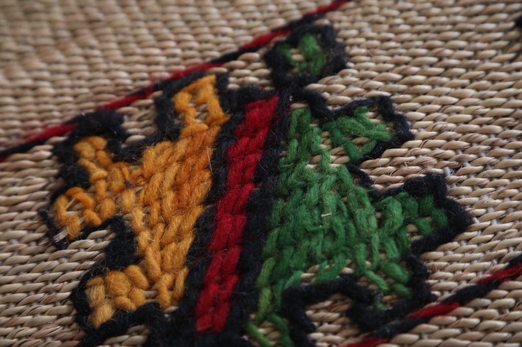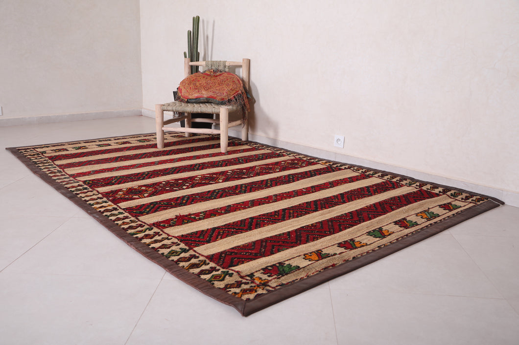 Vintage Khemisset Straw Leather Mat - 6 FT X 10 FT | Moroccan Craft