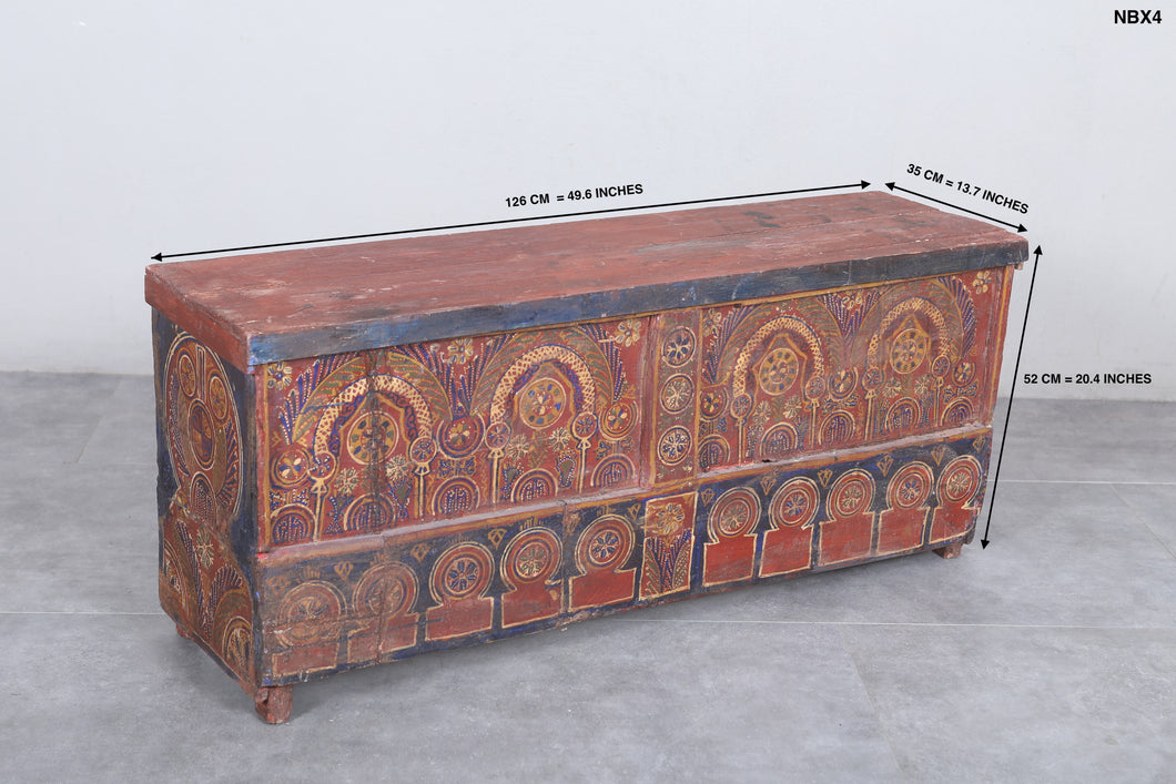 Vintage Moroccan chest H 20.4 INCHES X W 49.6 INCHES X D 13.7 INCHES