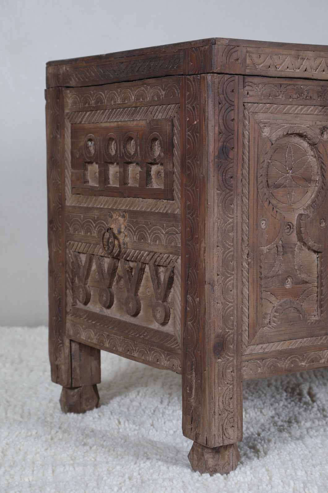 This vintage Moroccan chest is handcrafted to perfection. Expertly designed to last for years, it features a timeless look with measurements of 25.5" x 47.8" x 19.2". Enjoy this sophisticated piece of art in your living room for decades to come.