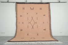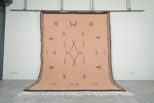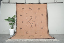 Enhance your space with this vintage Moroccan rug, crafted in earthy beige tones with intricate geometric patterns. This handwoven masterpiece reflects traditional Berber artistry, offering a perfect blend of elegance and authenticity.