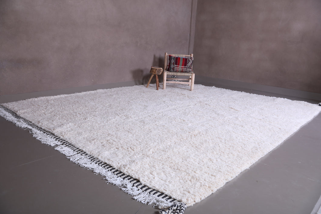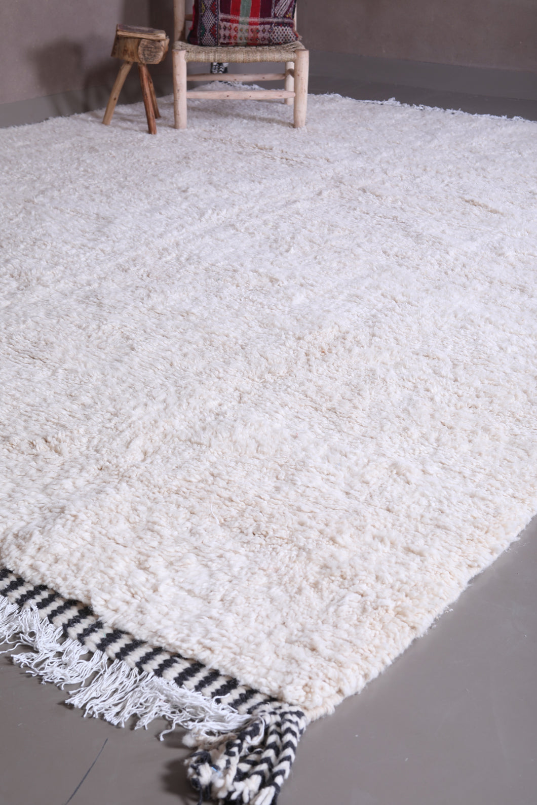Transform your living space with this luxurious white shaggy Moroccan rug. Featuring a soft, high-pile texture, this handmade Berber rug is crafted from natural wool, ensuring durability and elegance. Its minimalist design is accentuated by delicate black detailing along the edges, adding subtle sophistication. Perfect for cozying up your living room, bedroom, or office. Available in custom sizes to fit any space, this rug seamlessly blends traditional Moroccan craftsmanship with contemporary decor needs.