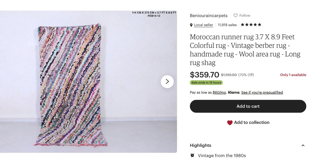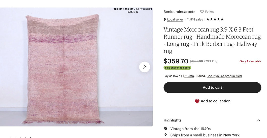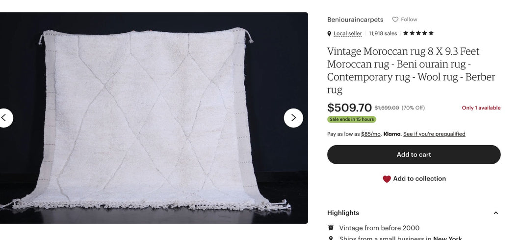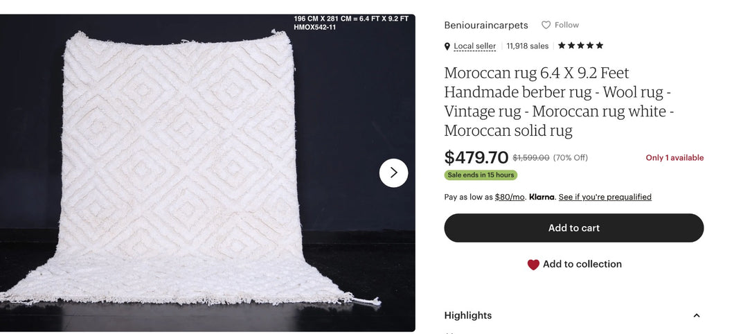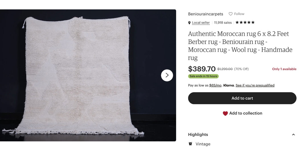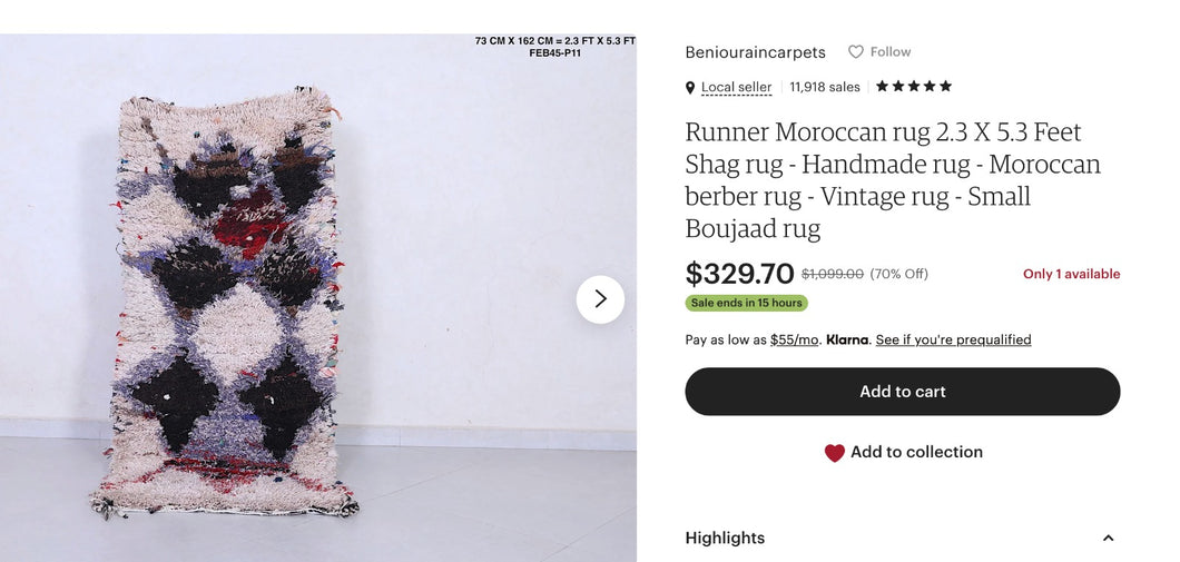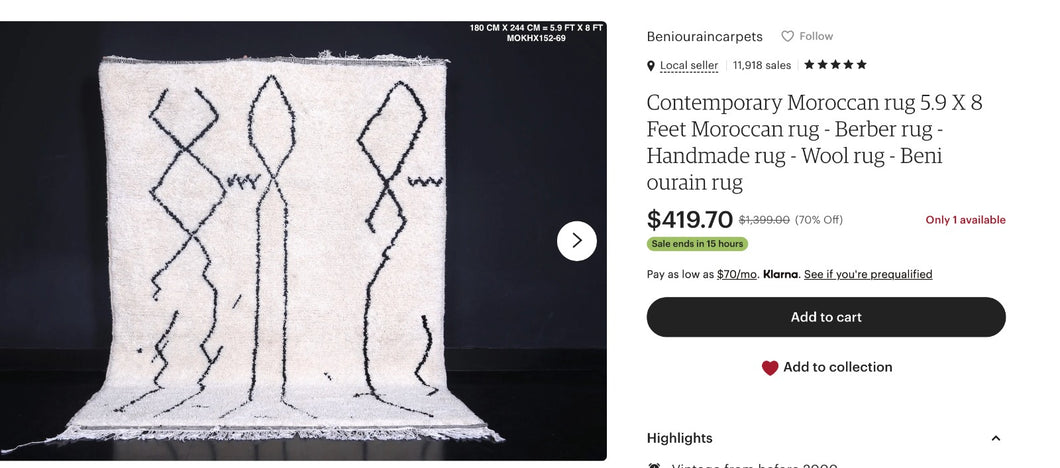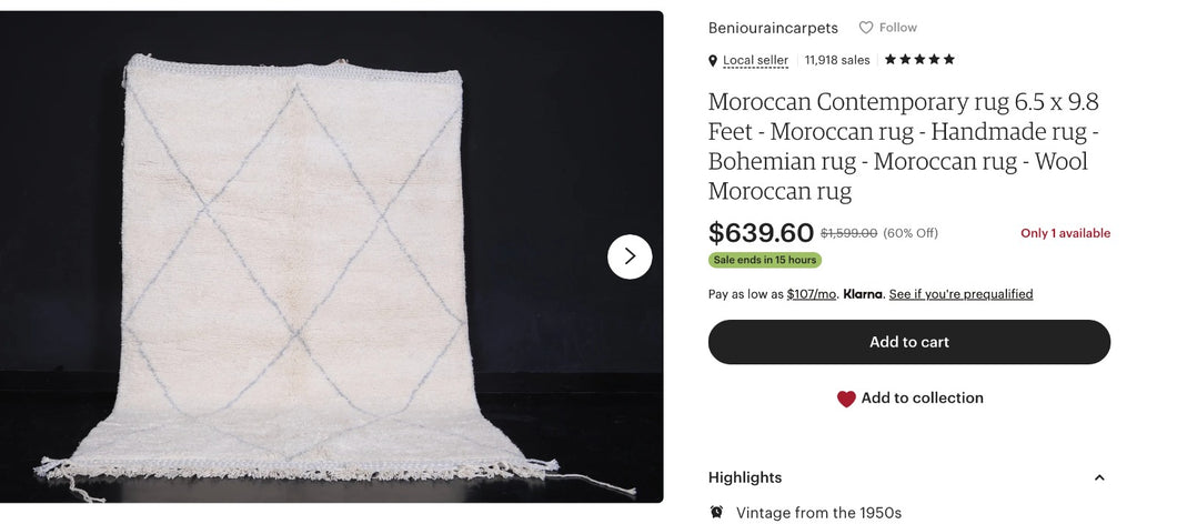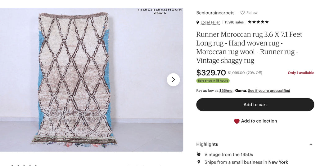 plus five 60cm×100cm doormat size Beni Ourain rugs, please.